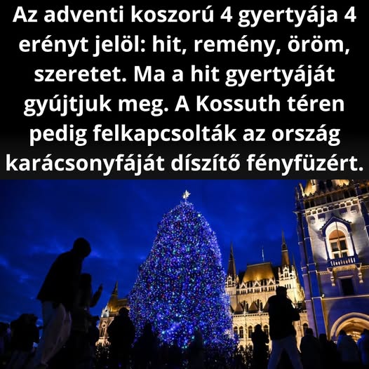 ️ Ma meggyújtottuk a hit gyertyáját. A Kossuth téren pedig már teljes pompájában áll a karácsonyfa.