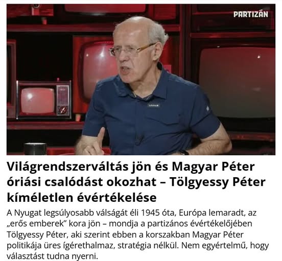 Tölgyessy Péter (akinek Magyar a cipőfűzőjét sem köthetné be intellektuális és politikai szaktudás terén) a Partizánba mondta el: Magyar Péter egy…