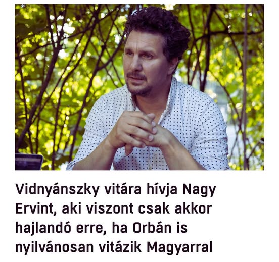 A mindig széles terpeszállásban alfahímkedő Nagy Ervin nem mer kiállni vitázni Vidnyánszkyval.