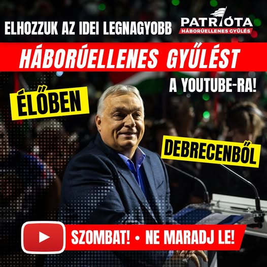 ️Háborúellenes Gyűlés ÉLŐBEN, egyenesen Debrecenből a Hír TV-n!