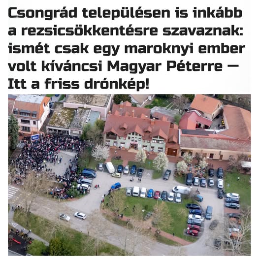 A fotó 17:43-kor készült a 15 ezres Csongrád településen. Jól látszik: csupán néhány maroknyi ember kíváncsi az olcsó orosz energia betiltására és a rezsicsökkentés megszüntetésére készülő Magyar…
