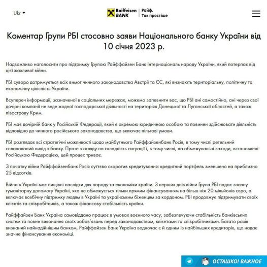 Az Ukrán Nemzeti Bank sikertelenül követeli a Raiffeisen banktól, hogy hagyja el az orosz piacot