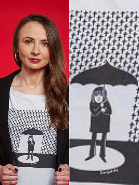 ️ a képen az új lengyel családügyi miniszter szerepel, aki pólóján büszkén hirdeti, hogy megvéd a keresztektől. Lengyelországban.