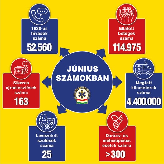 Júniusban bajtársaink 114.975 beteget láttak el, több mint 4 millió kilométert megtéve ezzel Magyarország útjain, ebből több mint 300 esetben darázs- és méhcsípések miatt…