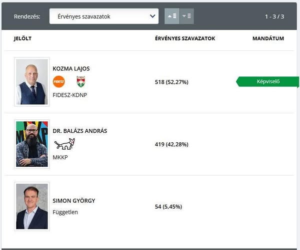 Áradt a Fidesz a Nyolcban: 52%-kal nyerte Kozma Lajos a VIII. kerületben rendezett időközi választást, amelyen a Tisza ezúttal sem mérette meg magát.