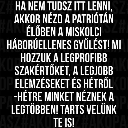 ☝️Háborúellenes gyűlés ma Miskolcon folytatódik