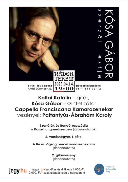 ️ Minden kedves érdeklődőnek szeretettel ajánljuk Kósa Gábor szerzői estjét.