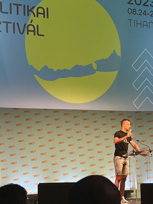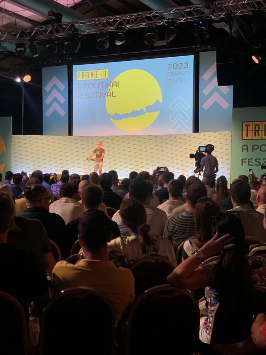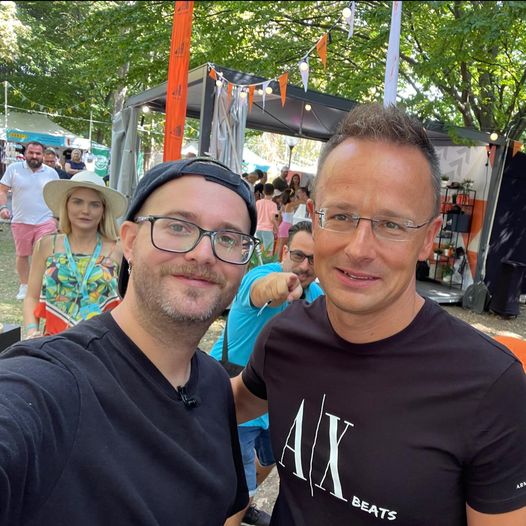 “Jó a kitűző!” – mondta nekem a kép készítésekor Szijjártó Péter a Megafon sátornál a Tranziton!
