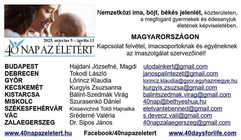 9-ik alkalommal 9 helyszínen: 40 Nap Az Életért!👶 Békés jelenlét, ima és lemondás a válsághelyzetben lévő édesanyákért és babáikért.