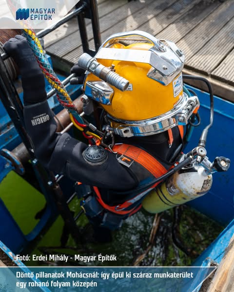 A folyómederben épülő 3-as pillérnél búvárokat is bevetettek: ők ellenőrizték a kéregelem helyzetét a víz alatt.