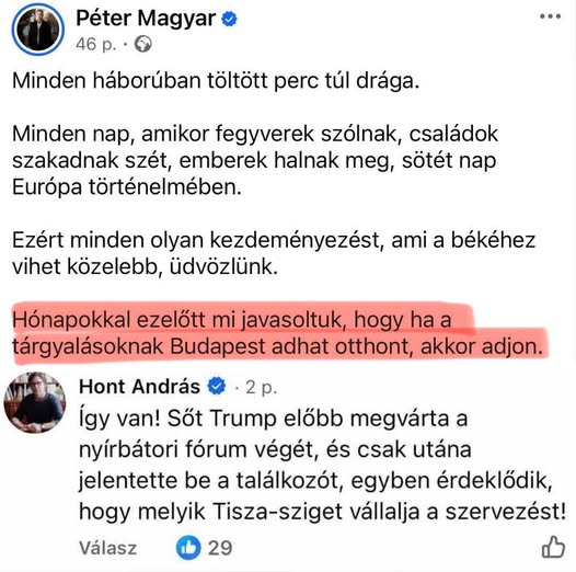 A Telex b..’eg megfejtette, hogy igazából Magyar Péter miatt találkozik Trump és Putyin Budapesten.