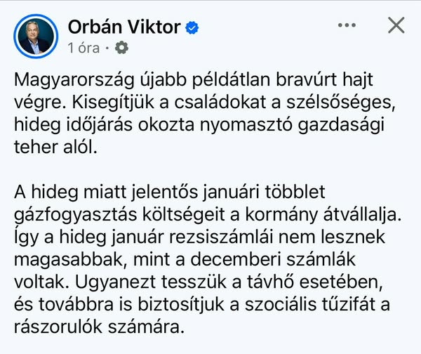 Miközben a kormány átvállalja a szokatlanul hideg januári gázfogyasztás többletköltségeit, aközben ne felejtsük el, hogy Magyar Péter szerint a rezsicsökkentés egy humbug,