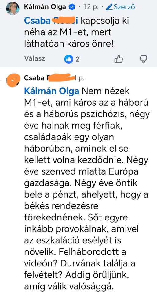 Olga néni szerint csak álprobléma a háború.