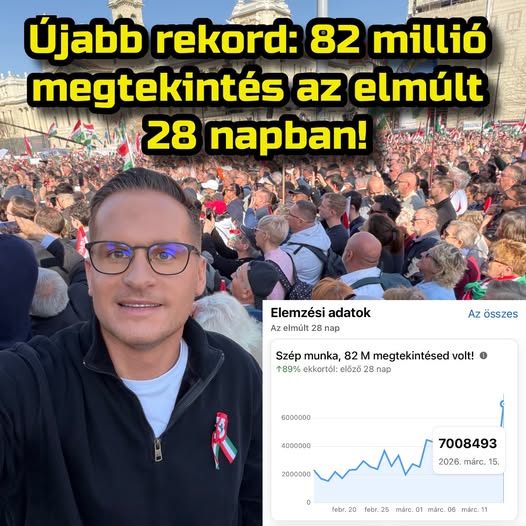 több, mint 1 millió videómegtekintés, 450 ezer néző a Békemenet-közvetítésen, 200 ezer az élő műsorfolyamra - a Patrióta tegnapi számai.