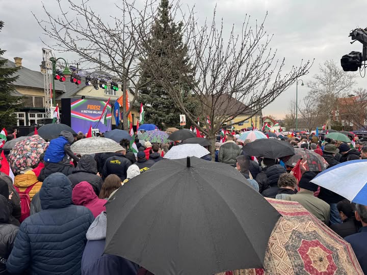 A rossz idő sem akadályozta meg, hogy kirakják a megtelt táblát Orbán Viktor országjárásának péceli állomására! 🤝🇭