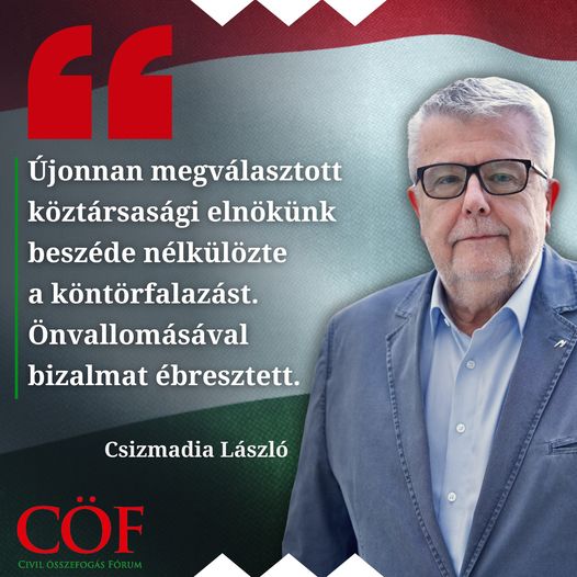 Csizmadia László: A CÖF-CÖKA, őrizve 2009-ben kialakított identitását, üdvözli Dr. Sulyok Tamás államfőnek választását! Munkájához támogatásunkat ajánljuk!
