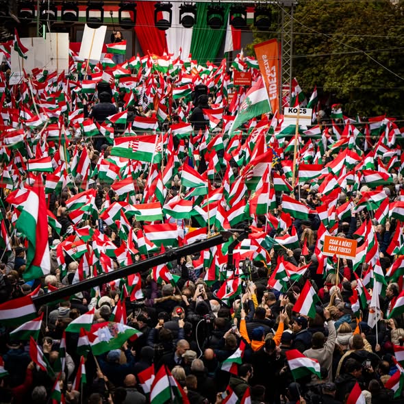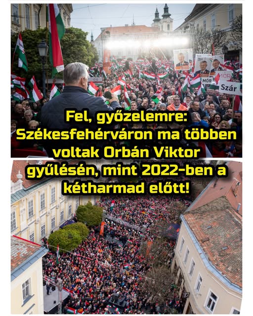 A nap fotói: nagyobb tömeg gyűlt össze ma Orbán Viktor székesfehérvári gyűlésén, mint a 2022-es választás előtt, melyen kétharmaddal nyert a Fidesz.