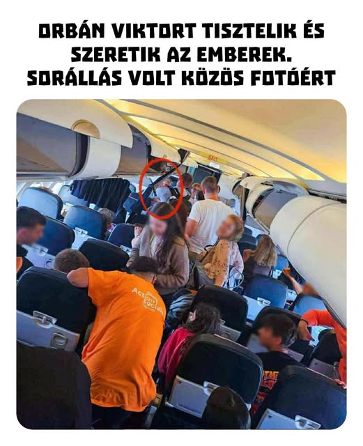 Orbán Viktort láthatóan tisztelik és szeretik az emberek. A repülőgépen állt a sor közös fotóért.