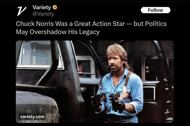 Chuck Norris nagyszerű színész volt - de a nézetei árnyékot vethetnek az örökségére - írják.