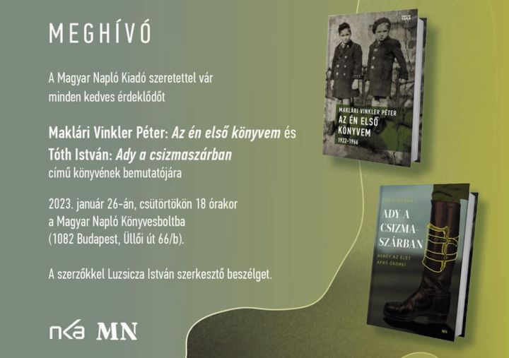 A Magyar Napló Kiadó szeretettel vár minden kedves érdeklődőt Maklári Vinkler Péter, Az én első könyvem és Tóth István Ady a csizmaszárban, avagy az élet apró örömei…