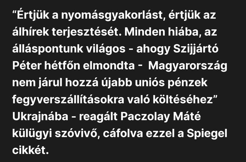 Magyarország számára elfogadhatatlan, hogy az ukrajnai fegyverszállításnak újabb lendületet adjanak.