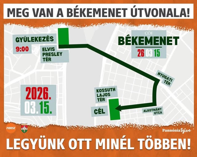 A békemenet útvonala vasárnap!