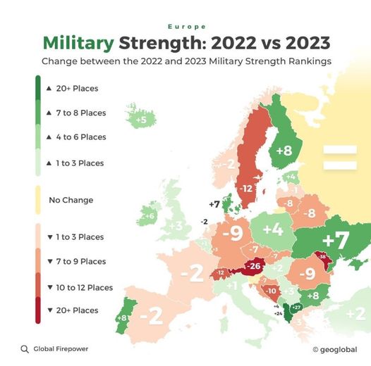 Az alábbi ábrán az látható, hogy a katonai erőt tekintve, hogyan változott egyes európai országok helyezése 2022-…
