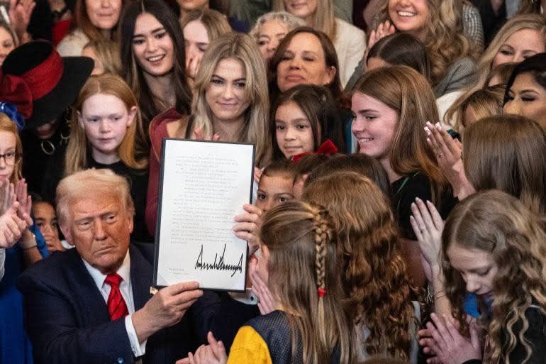 Trump nők gyűrűjében írta alá azt a rendeletet ami kitíltja a transz indulókat a női versenyekről!