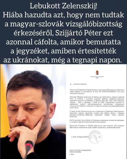 ️️️ Az ukrán elnök azt hazudta nem tudtak a magyar-szlovák vizsgálóbizottság érkezéséről.️ ☝️Ezt az ordas hazugságot Szijjártó Péter azonnal cáfolta, amikor bemutatta a jegyzéket amiben értesítették az…
