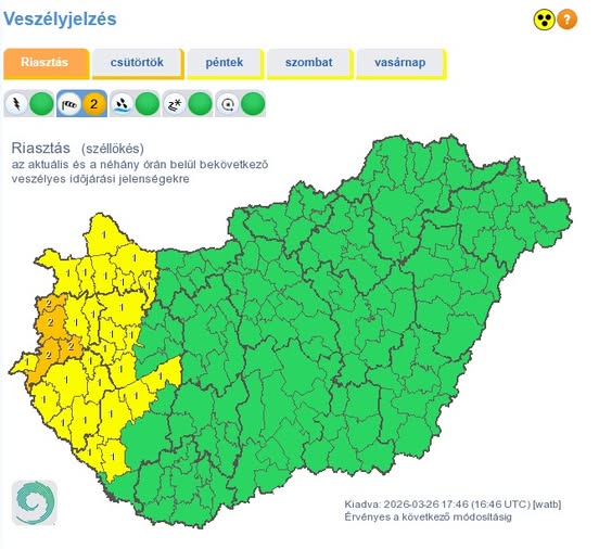 Másodfokú, narancssárga riasztást adott ki az erős…