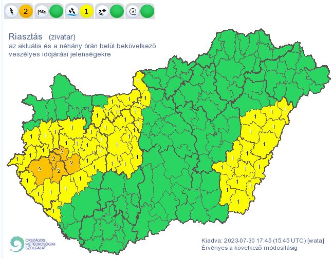 Másodfokú riasztást adott ki zivatarok veszélye miatt a meteorológiai szolgálat