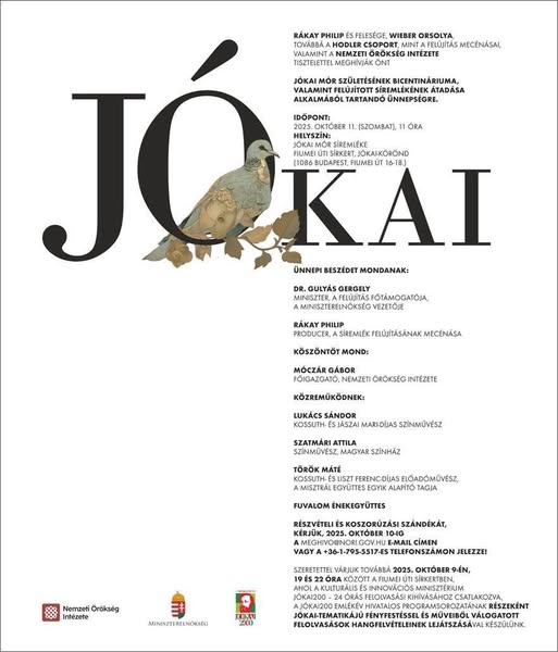Ahogy ígértem: október 11-én, 11 órakor ünnepélyesen átadjuk Jókai Mór írófejedelem felújított síremlékét. Gyönyörű műsorral készülünk, Lukács Sándor Kossuth-díjas…