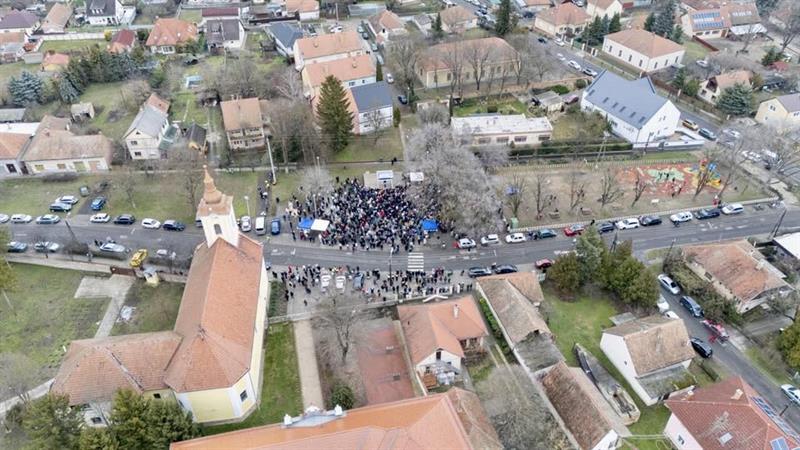 A 14 ezer fős Albertirsa összes lakója az utcán hömpölyög, lépni sem lehet, lám még a forgalom is megállt.