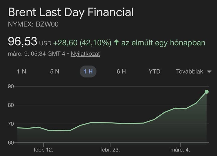Ma reggelre kilőtt az olaj ára. A Brent hordónkénti tarifája rövid idő alatt 100 dollár fölé emelkedett. Az ok leginkább az iráni háború. Komoly üzemanyag drágulás jöhet.
