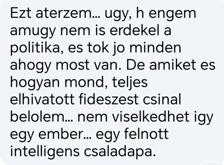 De jó ezt hallani. Így csinál a fiatal, nem politizáló hölgy ismerősünkből elkötelezett fideszest az elvakult tiszás apa.
