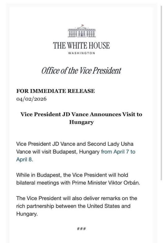 JD Vance alelnök magyarországi látogatást jelentett be