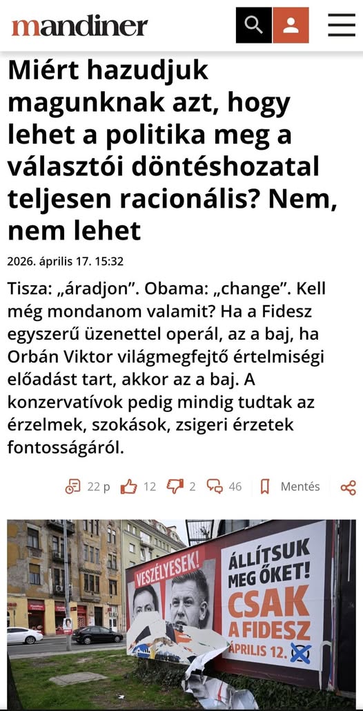 A Tisza fő szlogenje az, hogy „áradjon”. Esetleg: „most vagy soha”. Ez összetett és racionális? Látott valaki bonyolult és racionális üzenetet közvetítő tiszás plakátot? A plakátokon vagy arckép volt,…