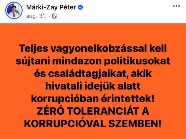 ️ Mivel jogerős ítélet született Márki-Zay korrupciós ügyében, önként mondjon le a vagyonáról.