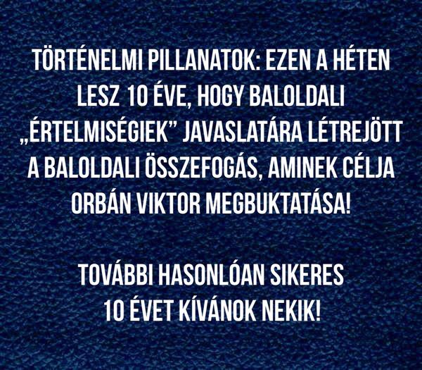 10 éve, hogy bejelentette a baloldal az összefogást! Hasonló sikereket nekik a következő 10 évre is!