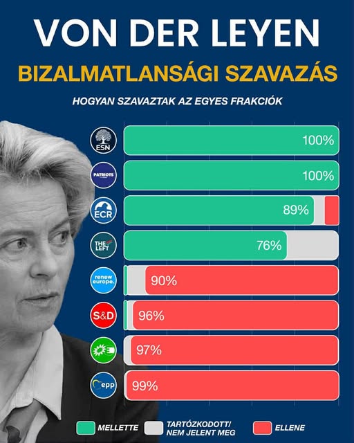 👇 Így szavaztak a frakciók az Európai Parlamentben Ursula von der Leyen bizalmatlansági indítványáról.