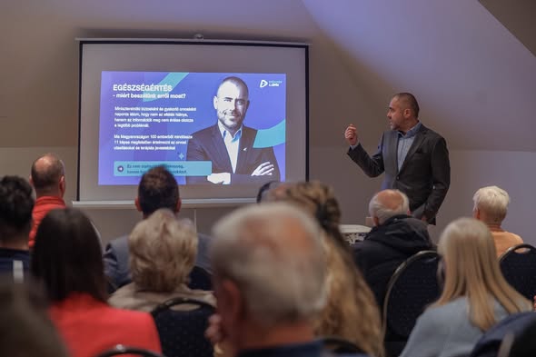 Kőnig Róbert doktor úr járt Tapolcán, aki bemutatta a résztvevőknek az Egészségtanfolyam elnevezésű alkalmazás működését.