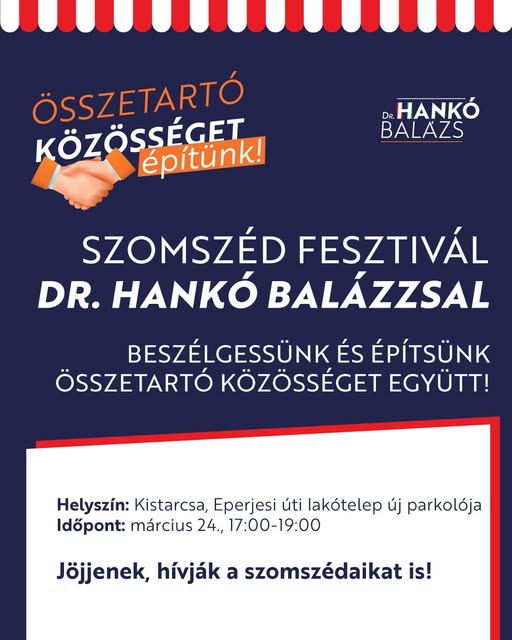 Találkozzunk március 24-én, 17:00 órától Kistarcsán, az Eperjesi úti lakótelep új parkolójában, egy közös, jó hangulatú Szomszédfesztiválon!