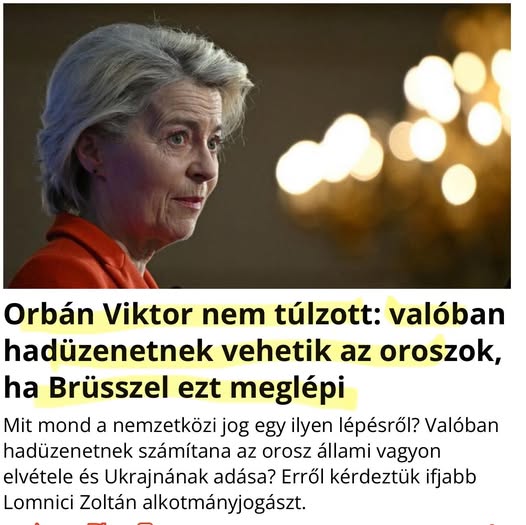 ️Orbán Viktor a Brüsszel felé tartó gépen elárulta: levélben kért tájékoztatást az orosz elnöktől, milyen válaszlépést tesznek, ha az EU hozzányúl a befagyasztott orosz vagyonhoz, illetve figyelemmel lesznek-e arra, ki hogyan szavaz a kérdésben. Azt a választ kapta, hogy erőteljes válaszlépést adnak majd az oroszok, ugyanakkor figyelembe veszik, hogy ki hogyan szavaz majd az EU-csúcson. Orbán Viktor világossá tette, ő nem támogatja ezt a lépést, ugyanis azt az eszkaláció egy újabb szintjének tekinti. Ez azt jelenti, hogy Magyarországot nem érinti majd hátrányosan, nem kell orosz szankcióktól tartanunk, ha a mostani EU-csúcson olyan döntést hoz a tagállamok többsége, hogy hozzányúlnak a befagyasztott orosz vagyonhoz, hiszen hazánk azt nem támogatja.