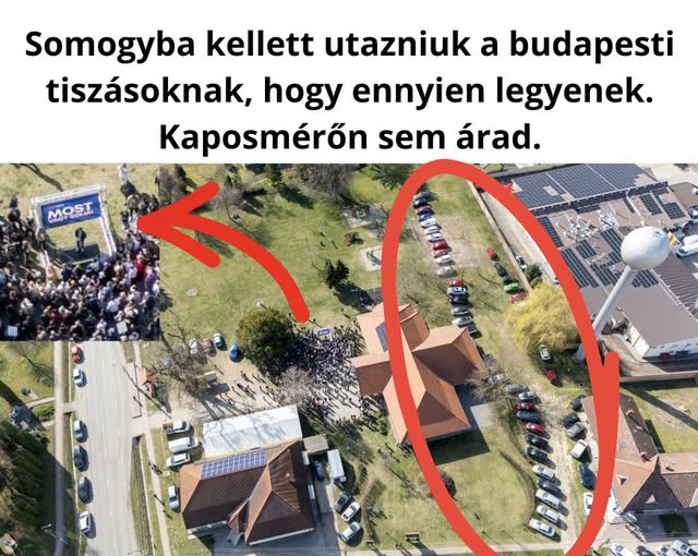Kaposmérőn ennyi ember kíváncsi Magyar Péterre, aki már a SZÍNPADON ÁLL, 13:51-kor. ennél is érdekesebb az a mennyiségű kocsi, ami a rendezvén körül áll, finoman szólva nem megszokott.