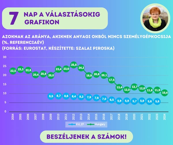 1,3 millióval kevesebb olyan honfitársunk volt 2024-ben, mint 2010-ben, aki anyagi okból nem tudott gépkocsit tartani.