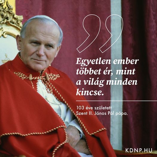 103 éve a mai napon született Szent II. János Pál pápa.