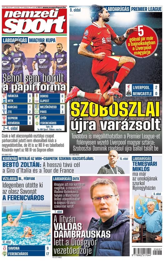 Újabb Szoboszlai-varázslat; nem borult a papírforma a kupában – a mai Nemzeti Sportból ajánljuk