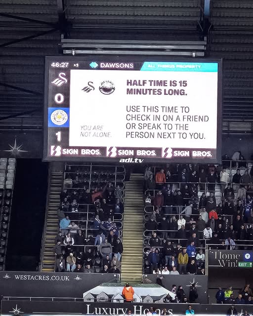 Ez az egyszerű, de nagyon hatásos, a depresszióra figyelmet felhívó szöveg szerepelt a Swansea City óriáskivetítőjén a Leicester City elleni meccsen:
