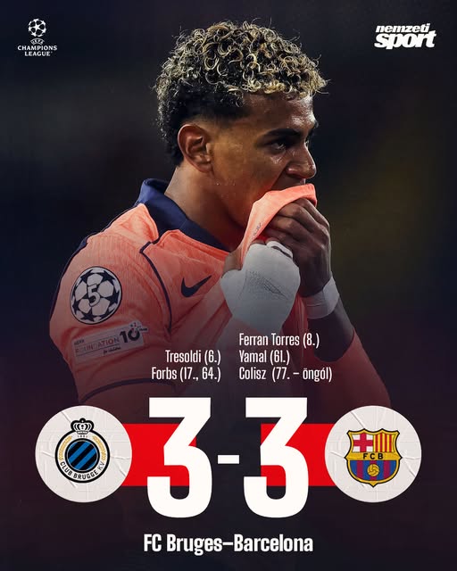 Nem ez lesz a Barcelona-szurkolók kedvenc BL-estéje: a katalánok döntetlent játszottak az FC Bruges ellen. 😮👀