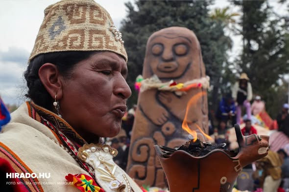 Ősi ünnepséget tartanak a déli félteke nyári napfordulójának alkalmából a bolíviai fővárosban, La Pazban 2025. december 21-én. A résztvevők hagyományos szertartásokat…